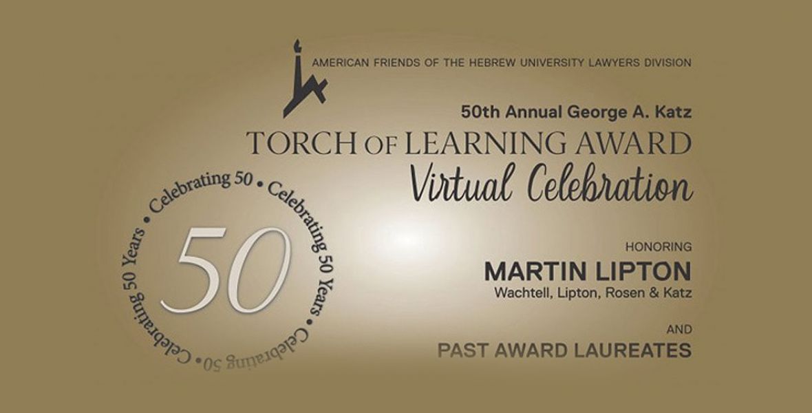 DOAR is proud to support AFHU’s 50th Annual George A. Katz Torch of Learning Award Celebration, honoring Martin Lipton of Wachtell, Lipton, Rosen & Katz.